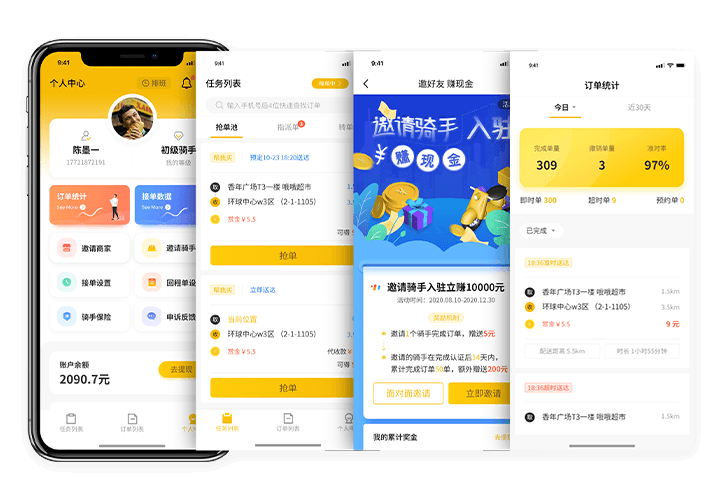 来单及时响铃推送,通过“抢单+派单”模式确保平台所有订单及时送达