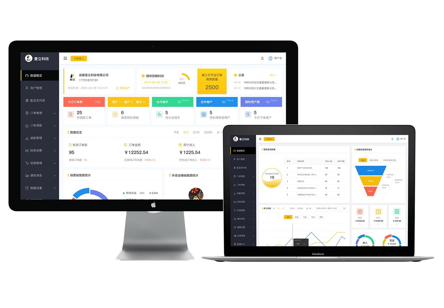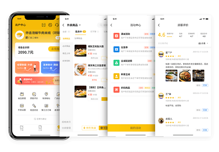 独立APP操作,快捷下单,及时接单,设置各类营销活动,活跃店铺用户